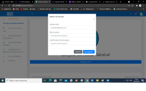 En cliquant sur le bouton modifier profil une Modale apparaît permettant de modifier ses informations personnelles, qui sont l’adresse email , et le mot de passe.
