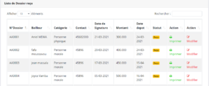 Dossier recu (secrétariat)